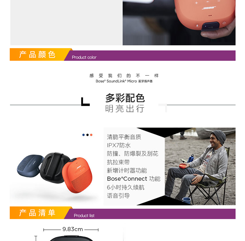 博世 Bose SoundLink Micro 藍(lán)牙揚(yáng)聲器 無線音箱/音響 (橙色)
