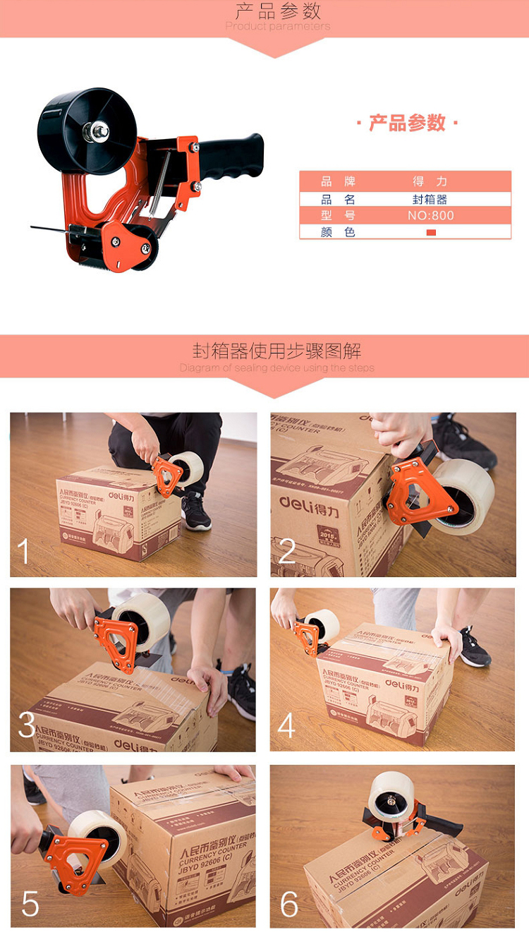 得力(deli) 800 膠帶封箱器 金屬切割器 倉庫打包機(jī) 適用膠帶寬度60mm