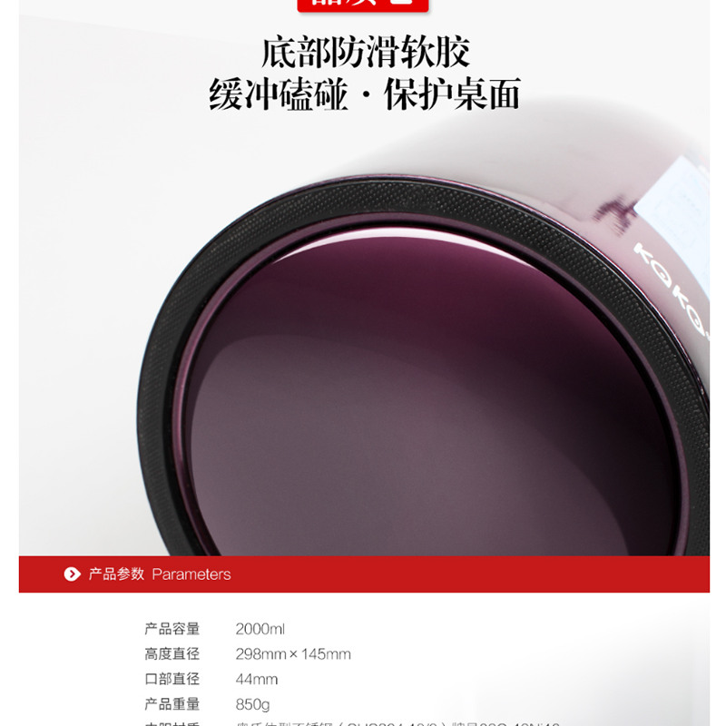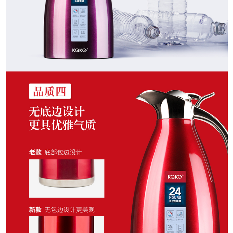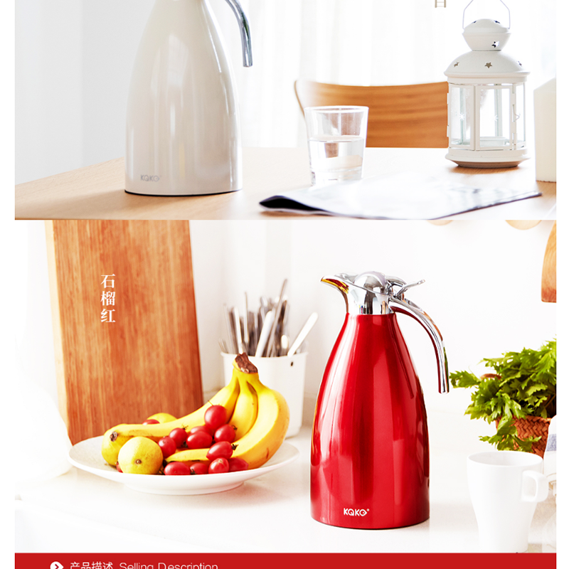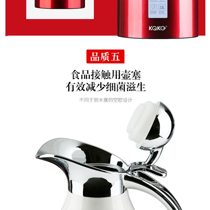 咔咔 KSC-2000-3 保溫壺家用暖壺大容量水壺?zé)崴繗W式暖瓶開水瓶保溫瓶2L 保暖壺咖啡壺(石榴紅)