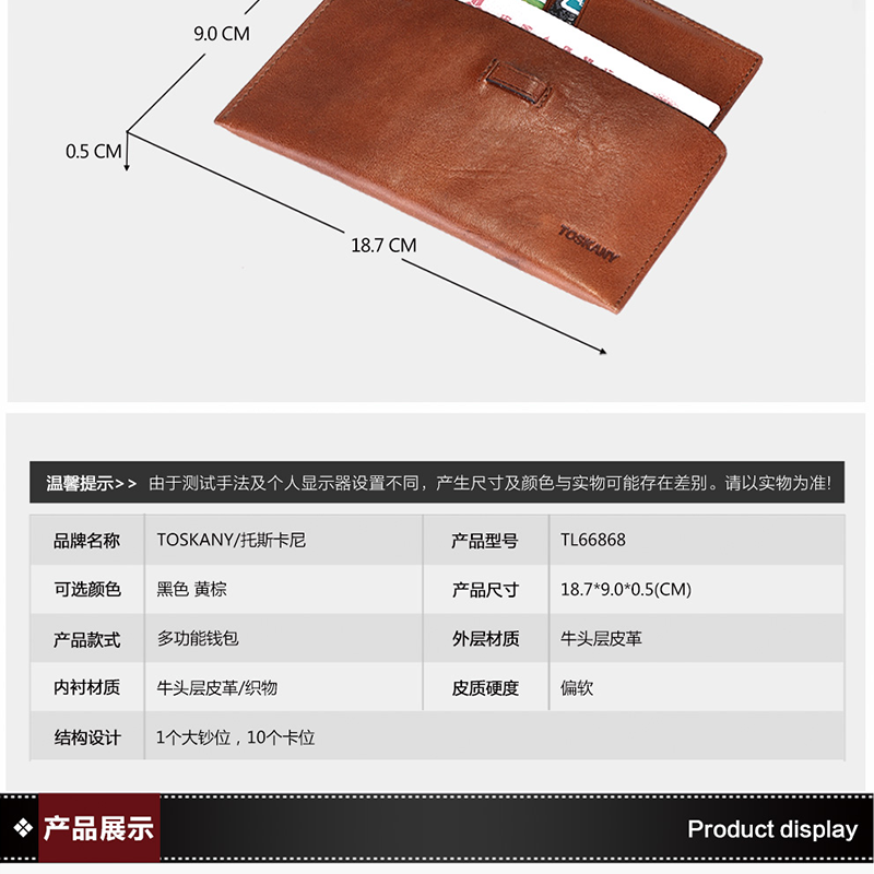 托斯卡尼(TOSKANY) TL66868 商務(wù)休閑插袋錢包/錢夾 頭層牛皮 (棕色)