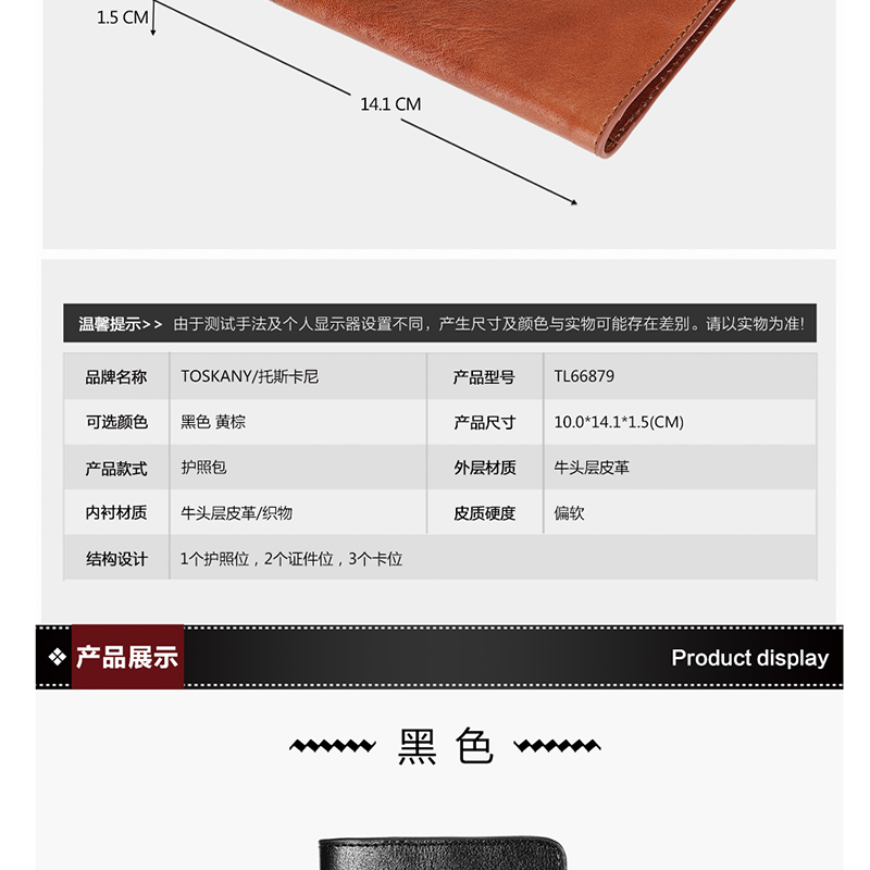 托斯卡尼(TOSKANY) TL66879 多功能護照包 頭層牛皮 (黑色)
