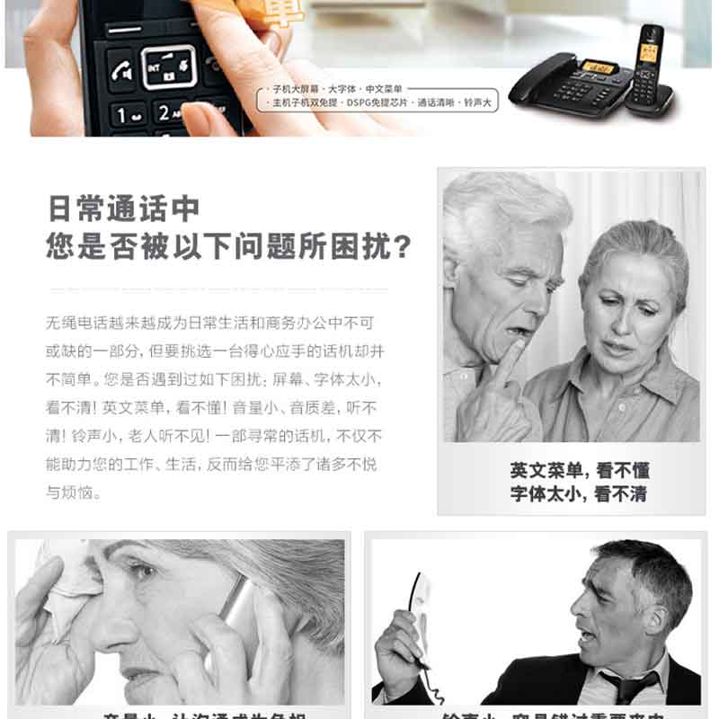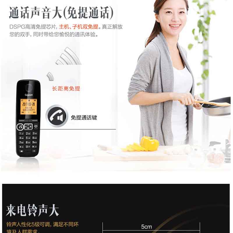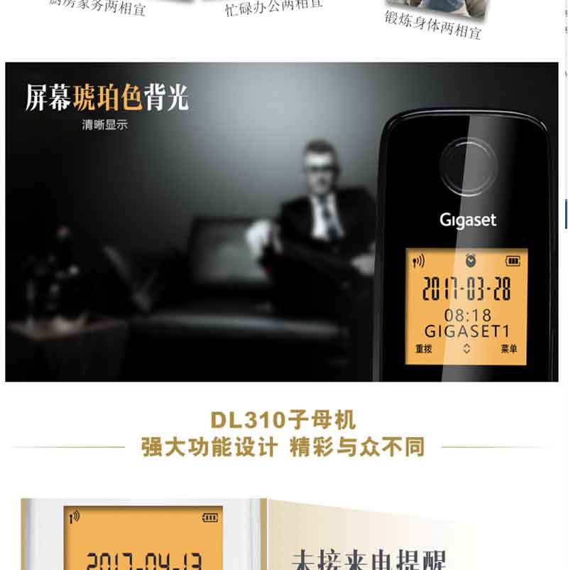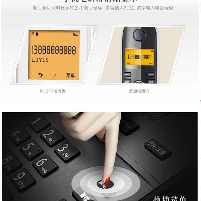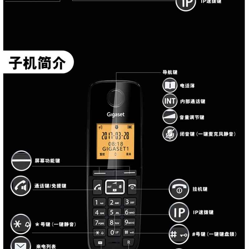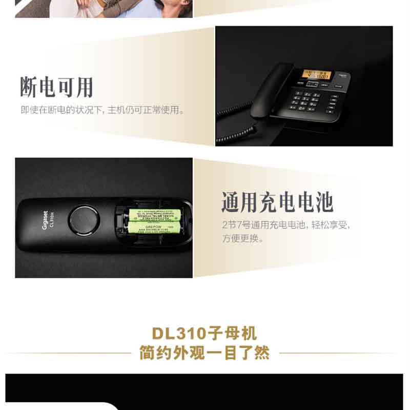 集怡嘉(Gigaset) DL310 原西門子品牌電話機 數(shù)字無繩電話家用子母機中文來電顯示一拖一辦公固定無線電話座機(黑色)