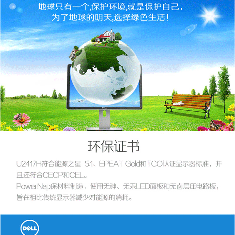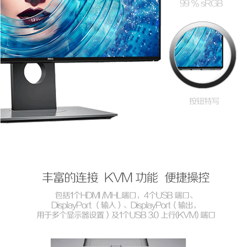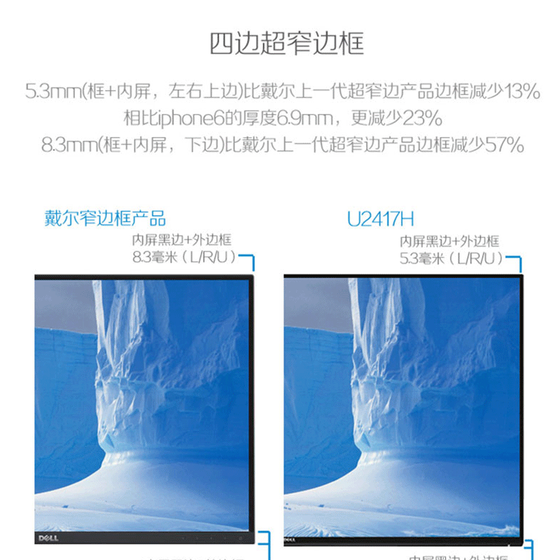戴爾(DELL) U2417H 23.8英寸 四面超窄邊旋轉(zhuǎn)升降IPS屏顯示器