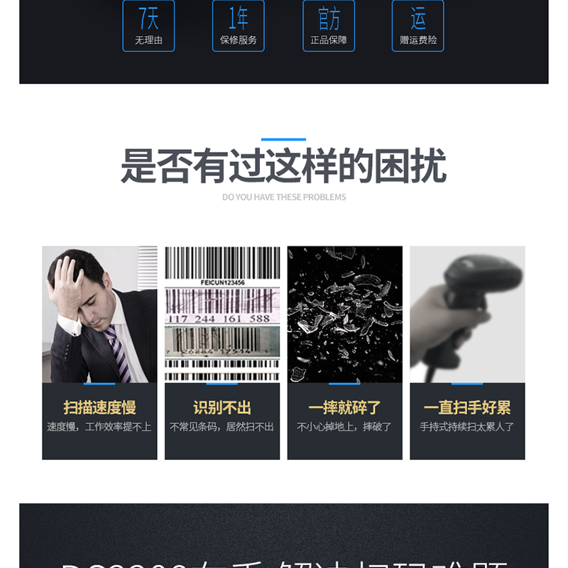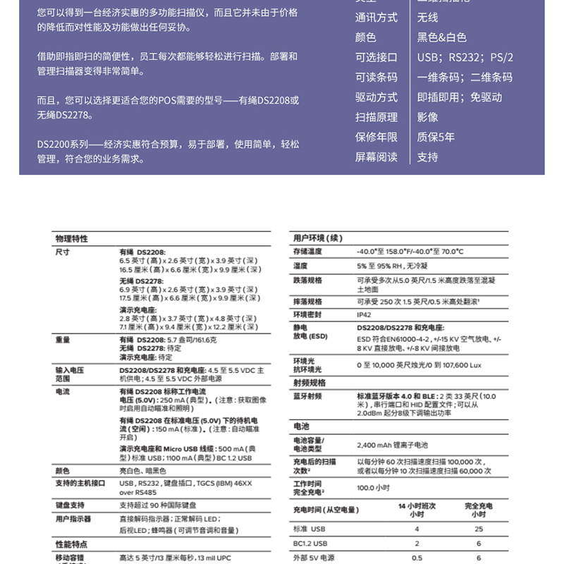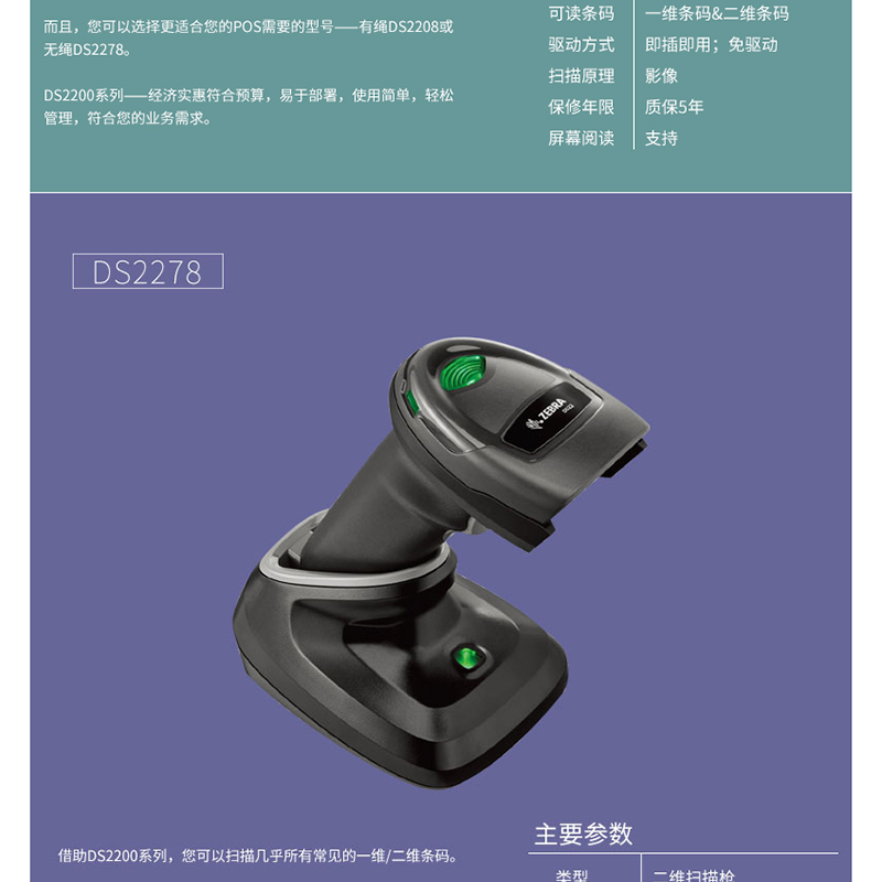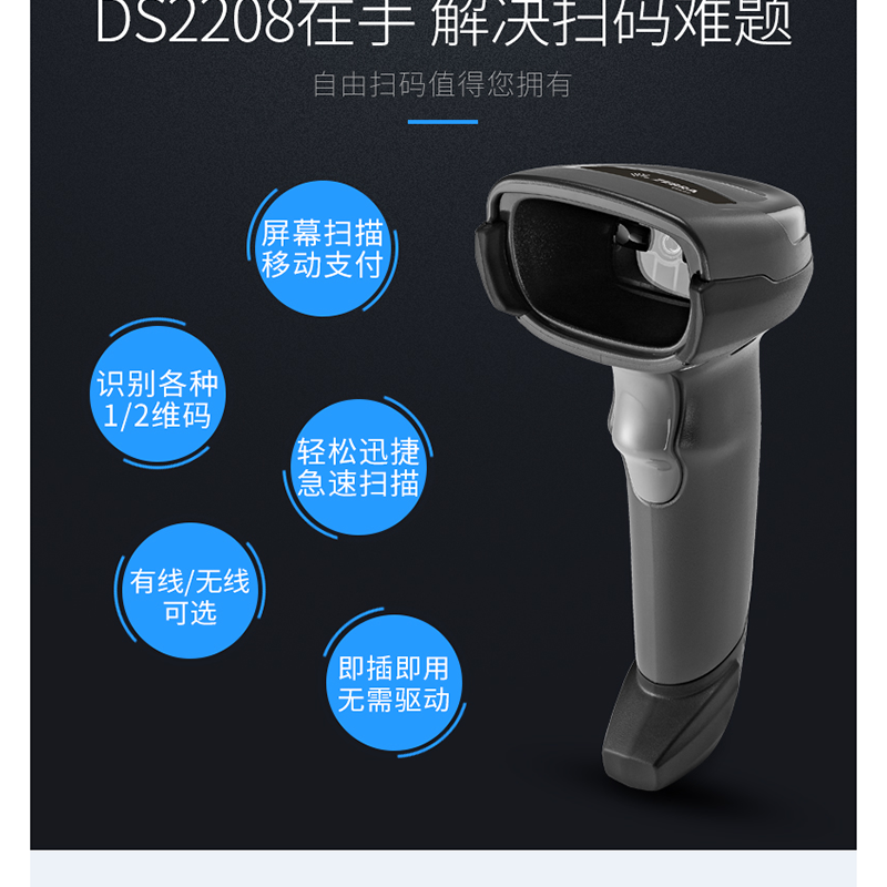 斑馬(ZEBRA) DS2208 二維碼/條碼掃描槍 微信支付寶收銀 (黑色單機(jī))
