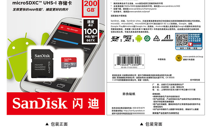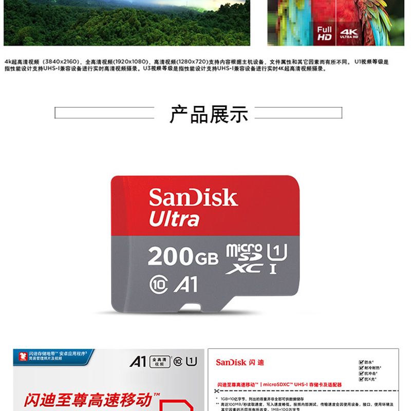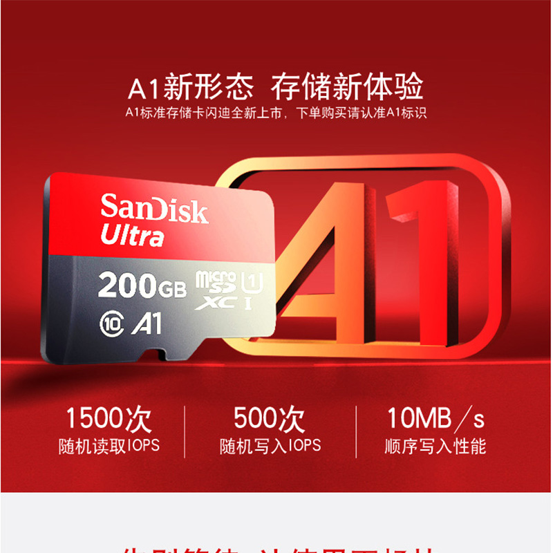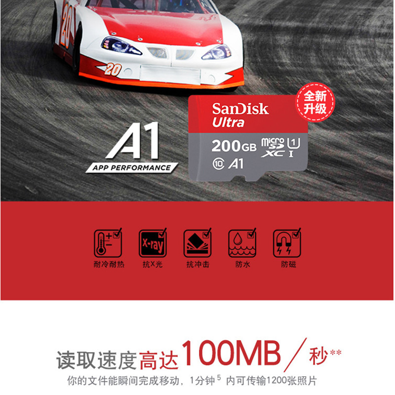 閃迪(SanDisk) A1 讀速100MB/s 至尊高速移動MicroSDHC UHS-I存儲卡 TF卡 (200GB)
