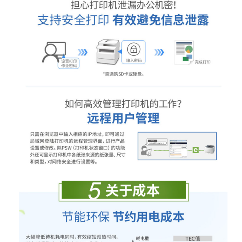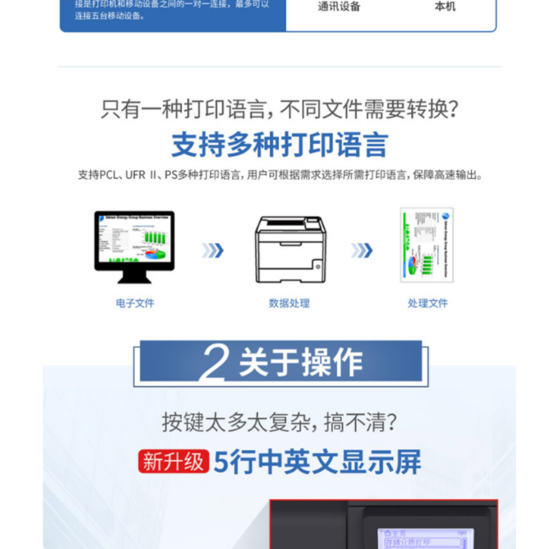 • 網(wǎng)絡(luò)打印18頁/分鐘 雙面無線18頁/分鐘 雙面無線NFC打印27頁/分鐘 雙面無線27頁/分鐘