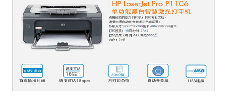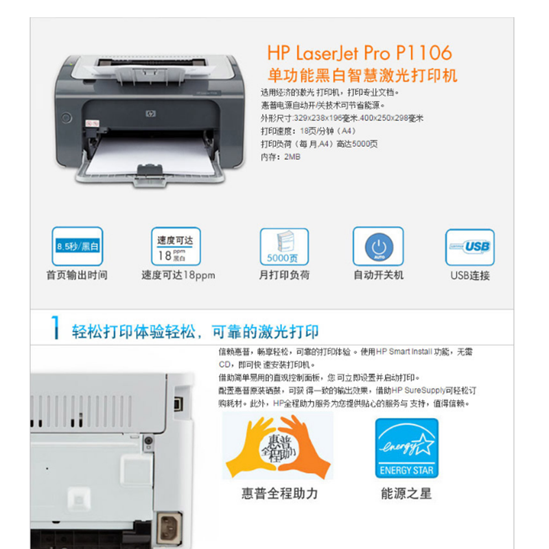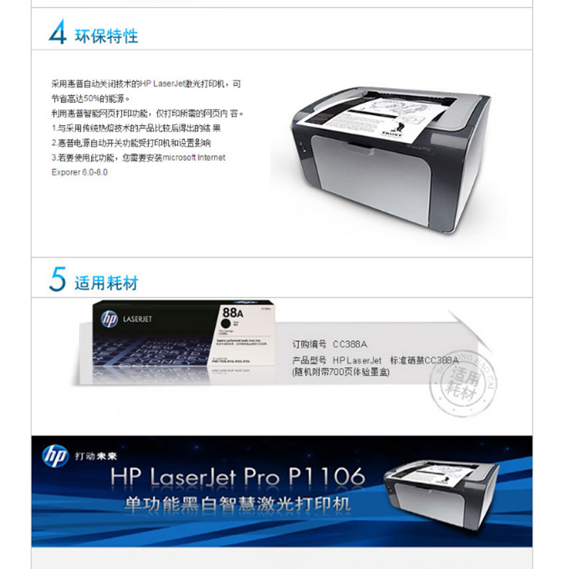 惠普(HP) P1106 黑白激光打印機(jī) (暢銷(xiāo)款,18頁(yè)/分鐘)