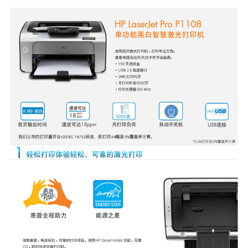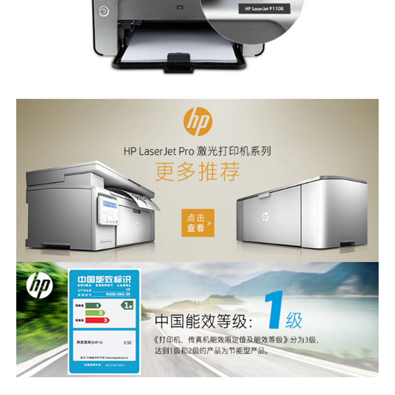 惠普(HP) P1108 黑白激光打印機(jī) (智慧款,18頁(yè)/分鐘)
