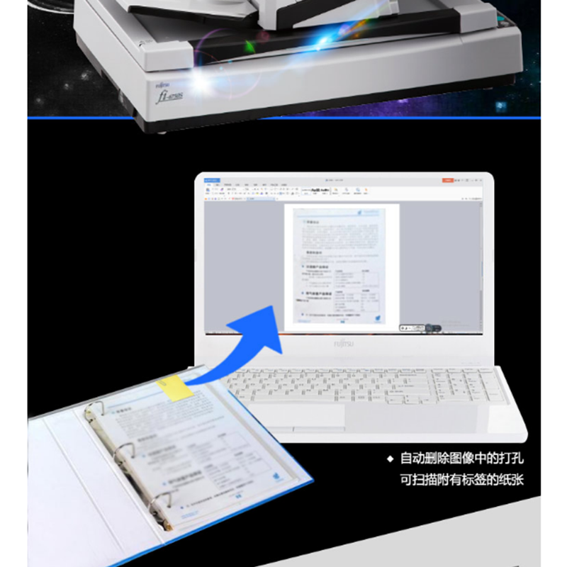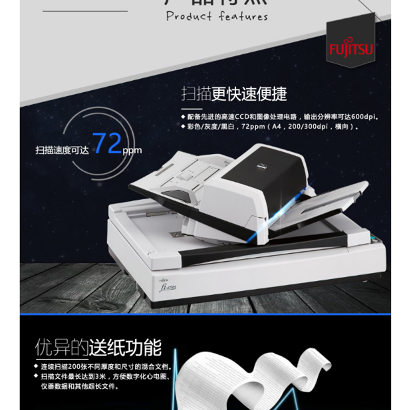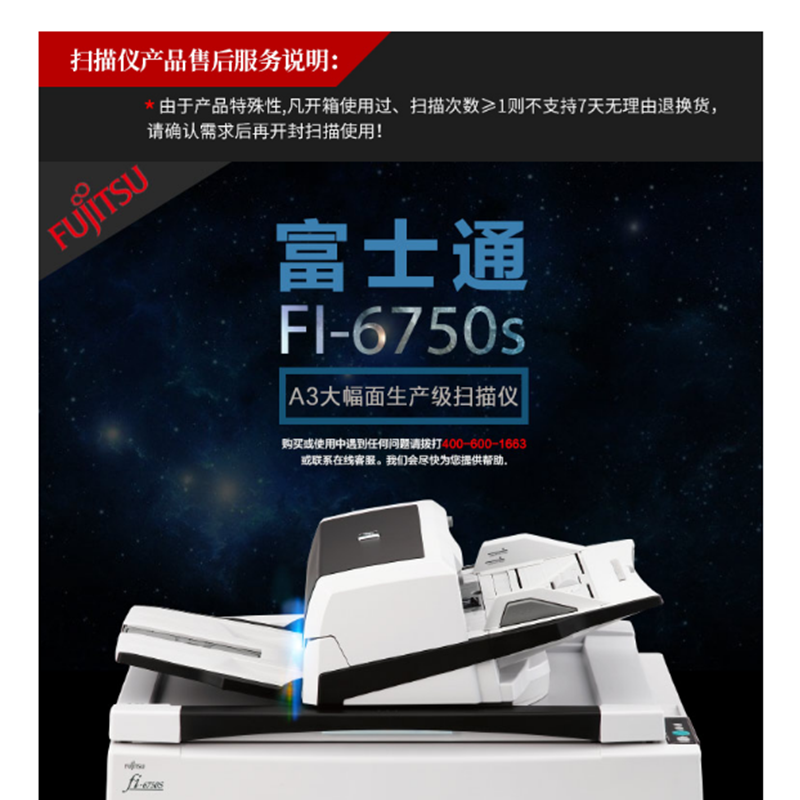 富士通(Fujitsu) Fi-6750S 平板+饋紙式掃描儀 高速雙面自動進(jìn)紙 (72頁144面/分鐘)