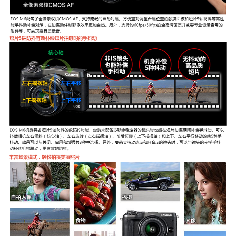佳能(Canon) EOS M6 可換鏡微單照相機(15-45鏡頭銀色套機)