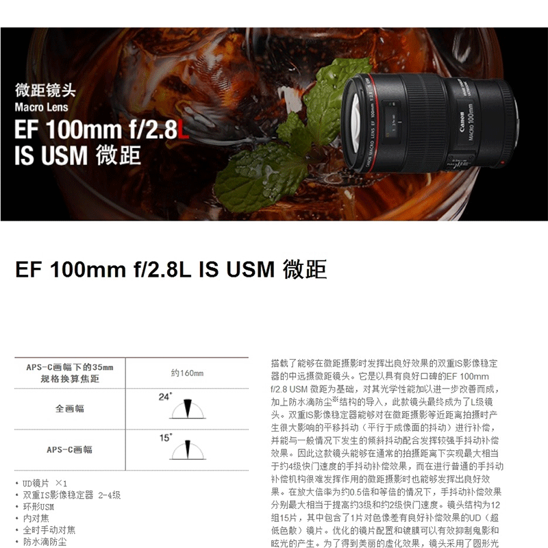 佳能(Canon) EF 100mm f/2.8L IS USM 微距鏡頭