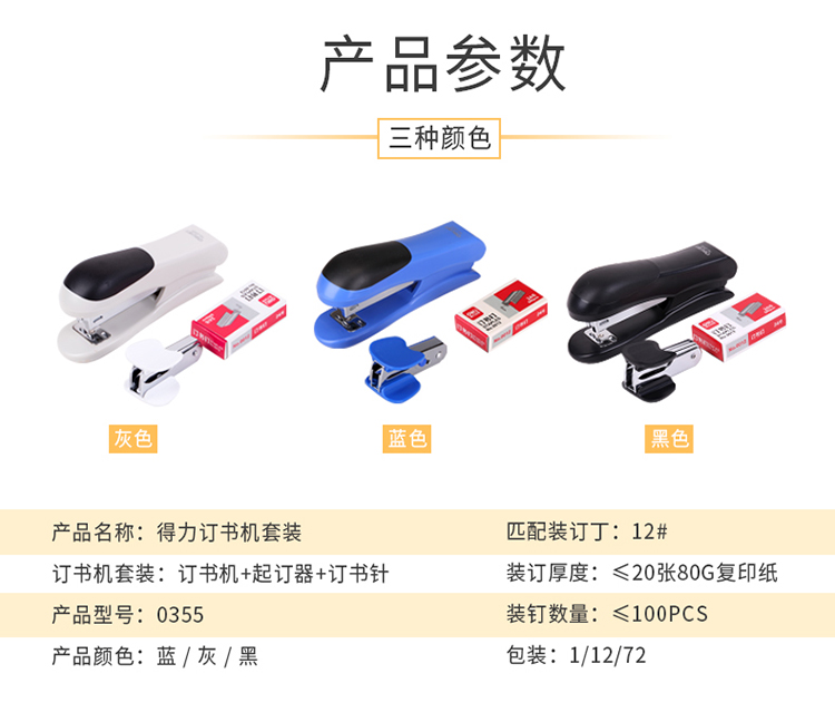 得力(deli) 0355 12#訂書機(jī)套裝(起訂器+訂書針+訂書機(jī)) 顏色隨機(jī)