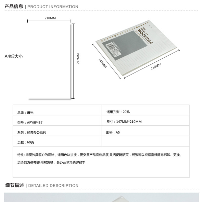 晨光(M&G) APY9F457 20孔活頁紙?zhí)嫘続5/60頁 顏色隨機