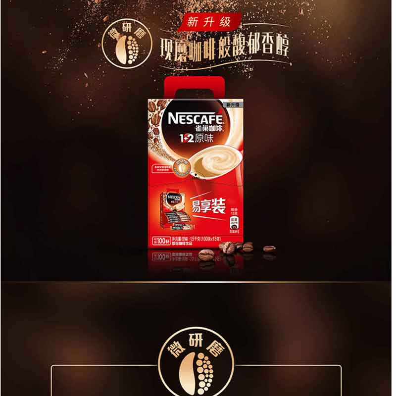 雀巢(Nestle) 咖啡1+2原味速溶咖啡飲品100條1500g