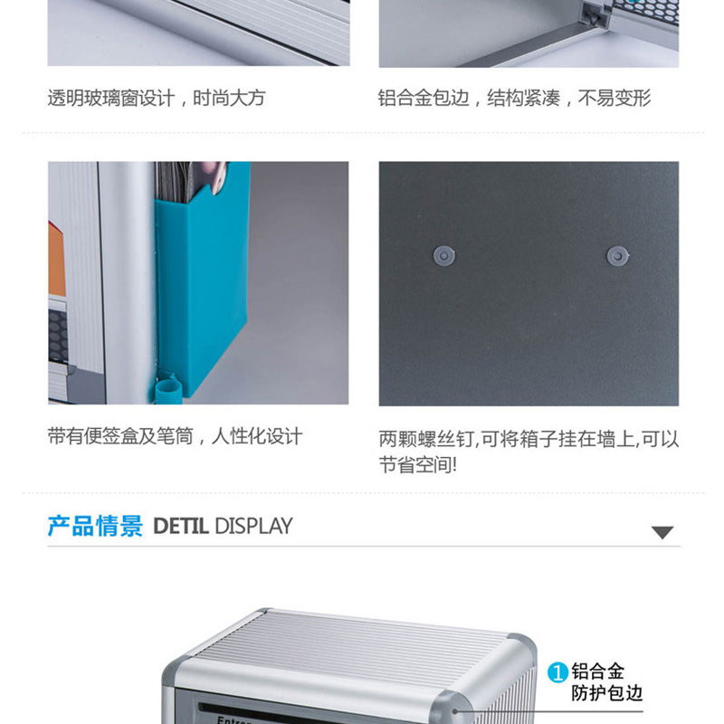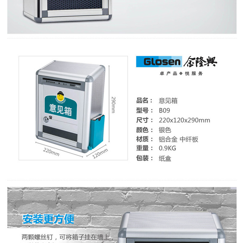 金隆興(Glosen) B09 意見箱投票箱建議箱投訴箱鋁合金包邊信箱室外可掛墻