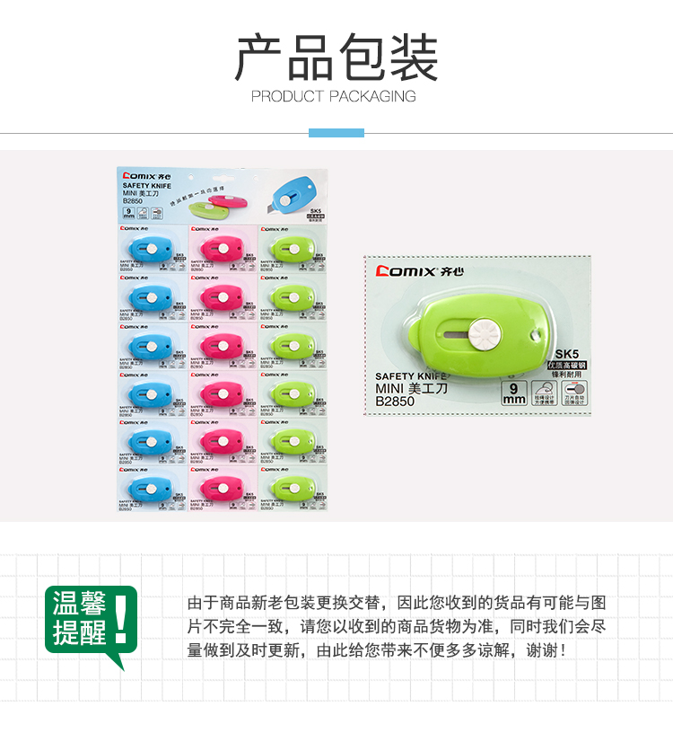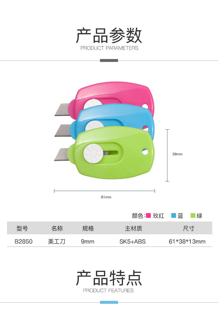 齊心(COMIX) B2850 9mm迷你美工刀壁紙刀顏色隨機(jī)