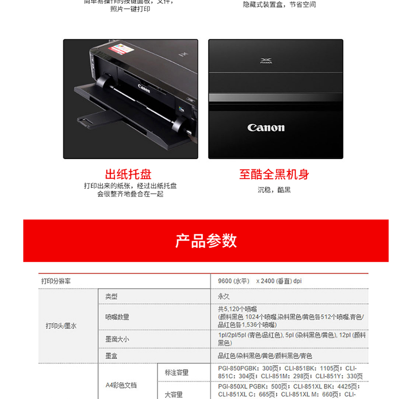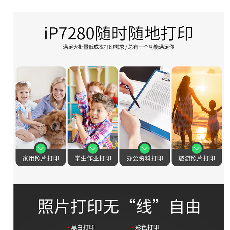 佳能(Canon) iP7280 彩色噴墨打印機 無線 照片打印